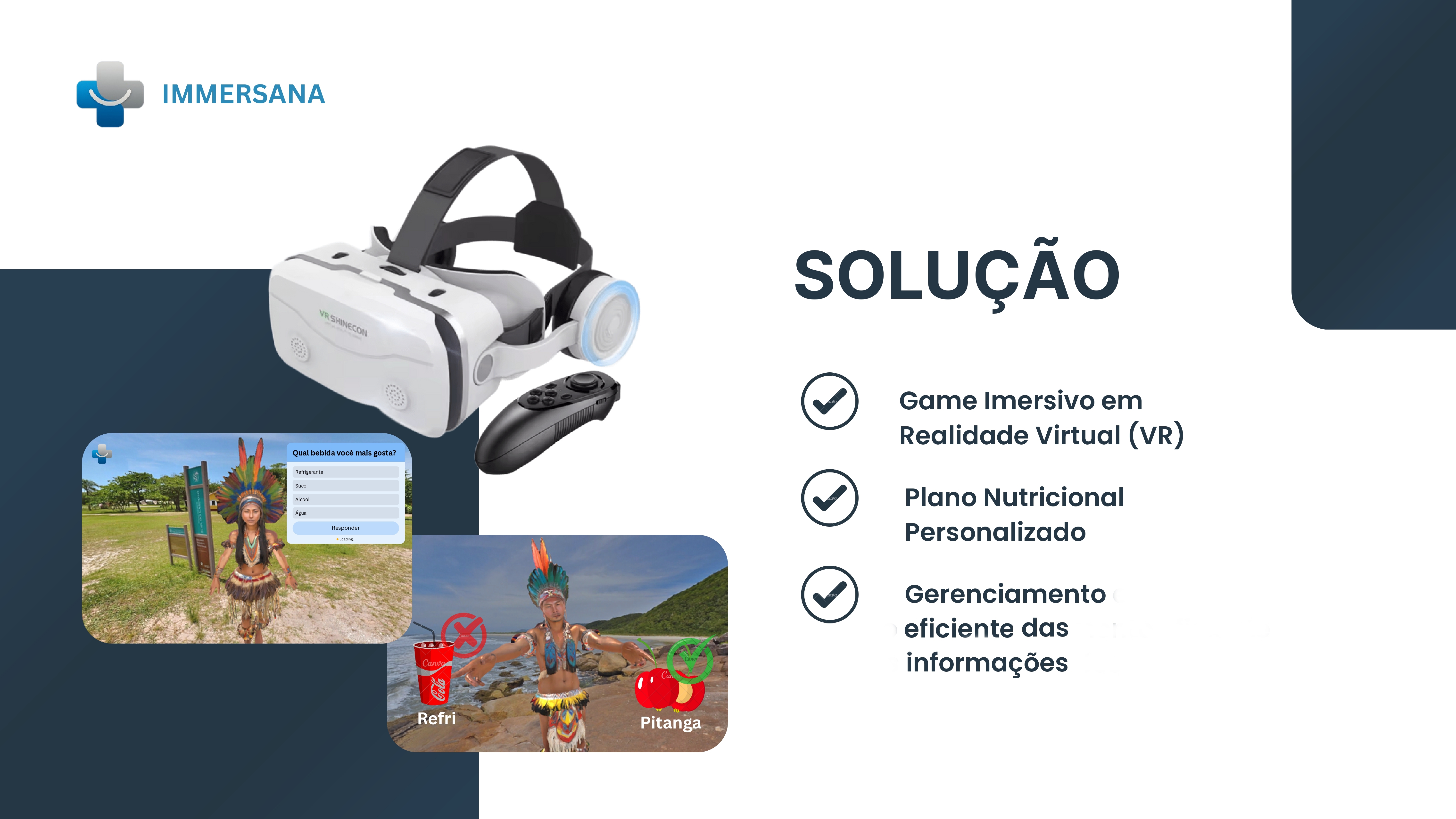"Immer" de imersão e "Sana" de alívio. Immersana leva consigo o cuidado e a promoção da saúde para pacientes oncológicos.